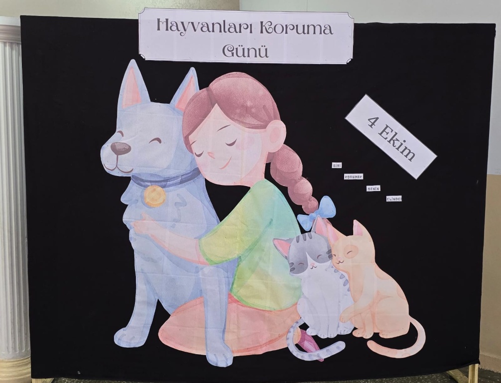 Dünyamızı çeşitli hayvan dostlarımıla paylaşıyoruz. Geçmişten günümüze kadar hayvan dostlarımızdan; besin elde etme, gücünden yararlanma, giyecek elde etme, sevgimizi paylaşma vb. bir çok alanda yarar sağlıyoruz. Hayatımızın önemli bir parçasını oluşturan hayvan dostlarımızı korumak önemli görevlerimizden biridir. Bu kapsamda 4 Ekim Hayvanları Koruma Günü etkinliği olarak pano hazırladık. Hayvan dostlarımızın bize sağladığı yararları, hayatımızdaki yeri ve önemi ve hayvan dostlarımızı korumamızın önemini öğrencilerimize anlattık. Etkinliğimizi koordine eden öğretmenlerimize ve katılım sağlayan tüm öğrencilerimize teşekkür ederiz.