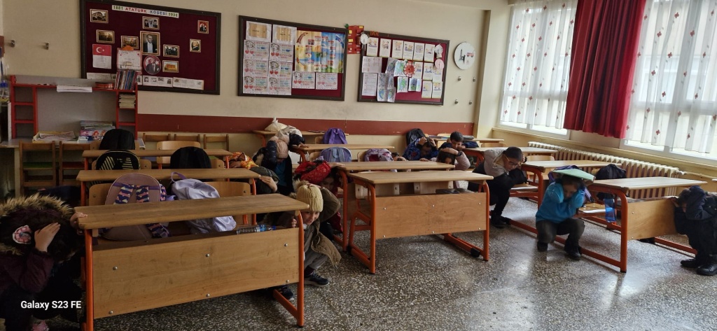 Tüm dünyada olduğu gibi ülkemizde de çeşitli dönemlerde afetler yaşanabilmektedir. Bu durum afetlere karşı önceden hazırlıklı olmayı ve farkındalık geliştirmeyi zorunlu hale getirmektedir. Bu kapsamda okulumuz sınıf öğretmenleri tarafından öğrencilerimize 23.10.2024 tarihinde Afet Farkındalık Eğitimi verilmiştir. Eğitimin amacı öğrencilerimizin afet durumlarına karşı hazırbulunuşluklarını artırmak, afet anında yapılması gerekenleri öğretmek ve farkındalık kazandırmaktır. Eğitim sonunda okulumuzda deprem tatbikatı yapılmıştır. Okulumuzda saat 12:20'de alarm çalınarak tatbikat başlatılmıştır. Öğrencilerimiz öncelikle çök,tutun ve kapan hareketini yapmışlardır. Ardından sınıf öğretmenlerinin koordinesinde sıra halinde okulumuz üst bahçesinde bulunan toplanma alanında toplanmışlardır. Deprem tatbikatı toplamda iki dakika sürmüş, okul binası bir dakika içinde tahliye edilmiştir. Eğitimi veren ve tatbikatı koordine eden öğretmenlerimize, tatbikat süresince yardımcı olan tüm personellerimize ve tatbikatı başarı ile gerçekleştiren öğrencilerimize teşekkür ederiz.